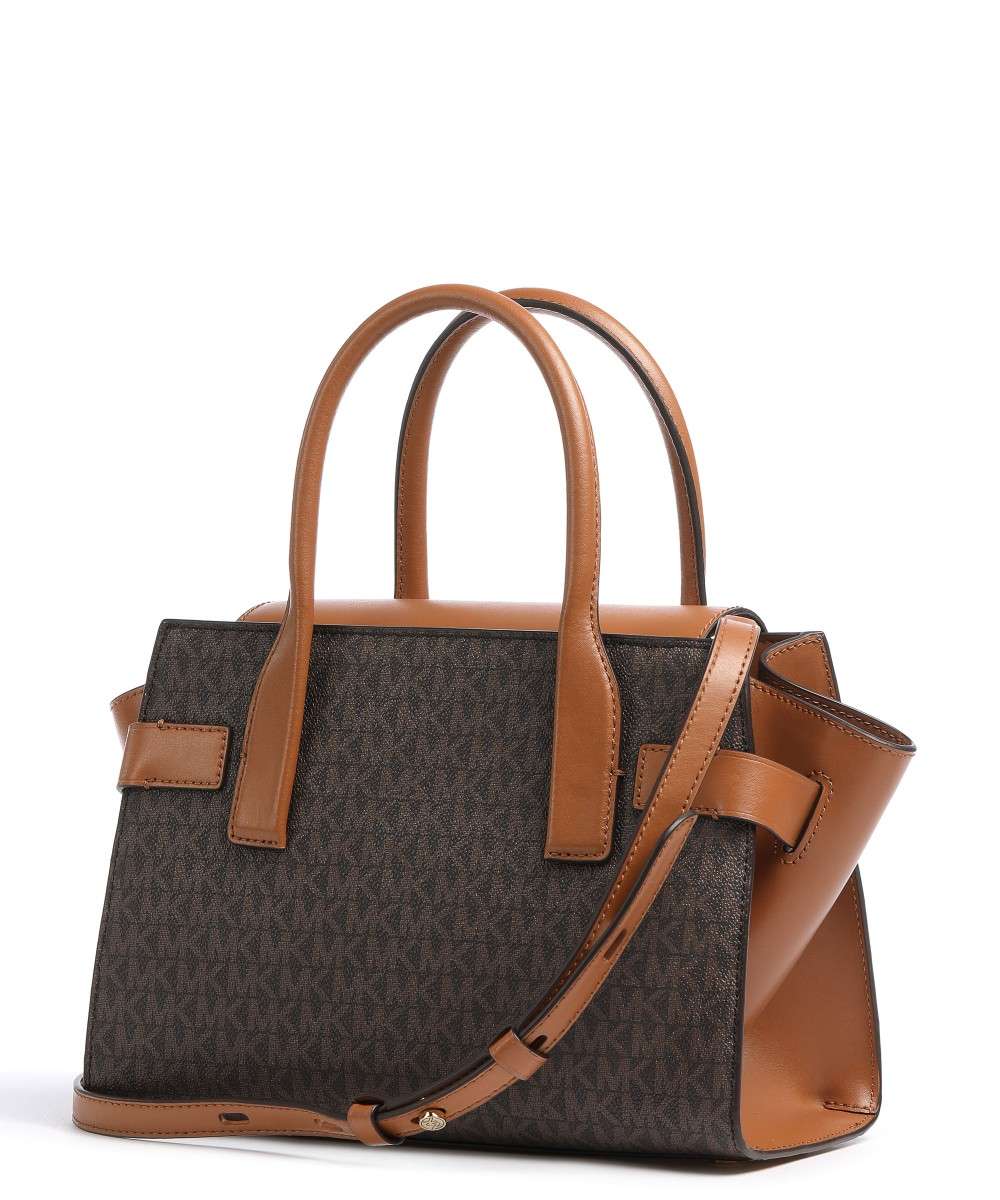 Unsere Henkeltasche Carmen ist mit ihrer klassischen Trapezform praktisch und elegant zugleich. Die Ketten- und Signature-Details machen dieses kompakte Modell aus Logostoff und Leder zu einem unglaublich vielseitigen Begleiter. Verstellbare Seitenflügel mit Riemen in Gürteloptik sorgen dafür, dass Sie alle Ihre Essentials im geräumigen Inneren verstauen können.