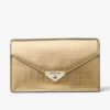 Unsere Umschlag-Clutch Grace setzt festlichen Looks das i-Tüpfelchen auf. Mit ihrer Silhouette aus strukturiertem Leder in Metallic-Optik ist sie ein wahrer Handschmeichler und hat genügend Platz für Smartphone, Brieftasche und vieles mehr. Tragen Sie sie elegant in der Hand oder hängen Sie sie mit dem Riemen aus Kettengliedern lässig über die Schulter.