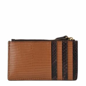 Dieses schmale, schicke Kartenetui ist ein Must-have, das nie aus der Mode kommt. Es ist aus zweifarbigem Leder mit Eidechsen- und Schlangenprägung gefertigt und mit mehreren Fächern und einem Münztäschchen mit Reißverschluss ausgestattet, sodass Sie alles Wichtige übersichtlich beisammenhaben.