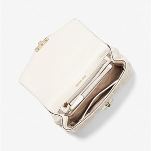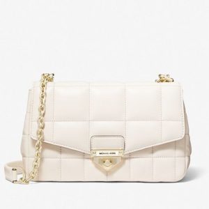 Unsere sorgfältig aus Glattleder hergestellte Schultertasche Soho trifft mit ihrer abgesteppten Optik den aktuellen Zeitgeist in puncto Accessoires. Der glänzende Steckverschluss und die Kette strahlen eleganten Glamour aus. Innen ist dank mehrerer Fächer genügend Platz für Brieftasche, Schlüssel und Lippenstift. Mit dem Handy in der rückwärtigen Außentasche sind Sie für alles gerüstet.